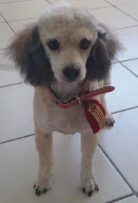 Encontrei ele ontem ,26/12 na via dutra entre SJC e Jacareí , estava com uma coleirinha de pet shopp vermelha e verde , estáva tosado e bem alimentado , acredito ter fugido .Chora muito durante a noite .