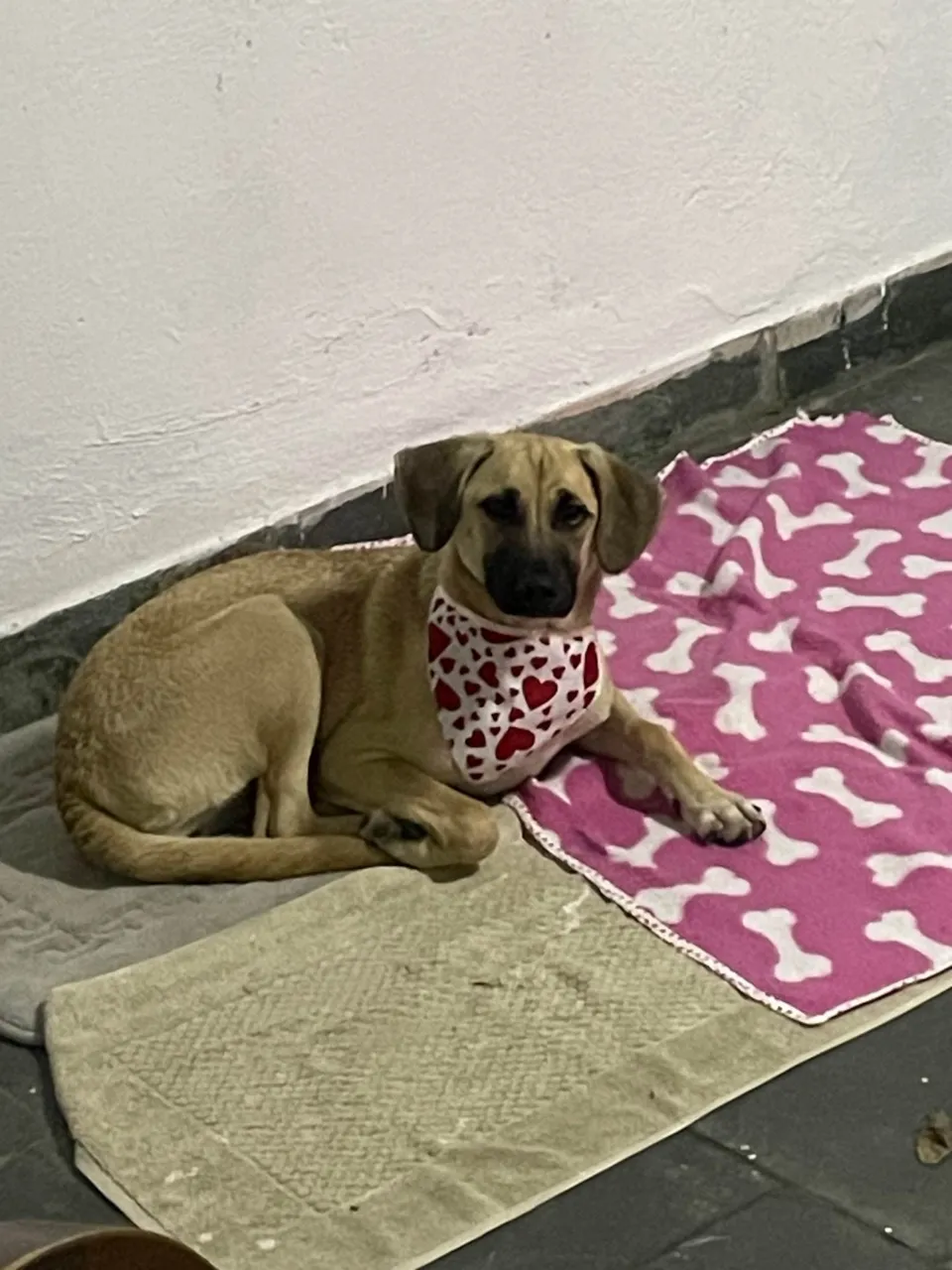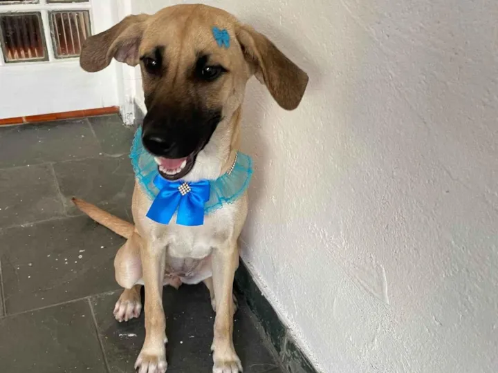 Encontrada na Vila Industrial de São José dos Campos, acolhemos e procuramos um lar para ela. Filhote fêmea, médio porte, muito dócil, obediente, brincalhona e se da bem com outros Pets.