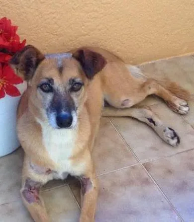 Esta cachorrinha foi encontrada atropelada na Rua Madre Paula, esquina com a Av. Heitor Vila Lobos, por volta das 23:30h do dia 31/12. Ela foi internada, recebeu os cuidados necessários após sofrer escoriações e uma luxação em uma das patas traseiras. Ela é extremamente dócil, está em boas condições físicas e é castrada. Morre de medo de trovões e fogos, suspeitamos que ela possa ter fugido por sentir medo. Estamos procurando por seu dono ou alguém com muito amor para adota-la, já que infelizmente não moro na cidade e não posso ficar com ela.