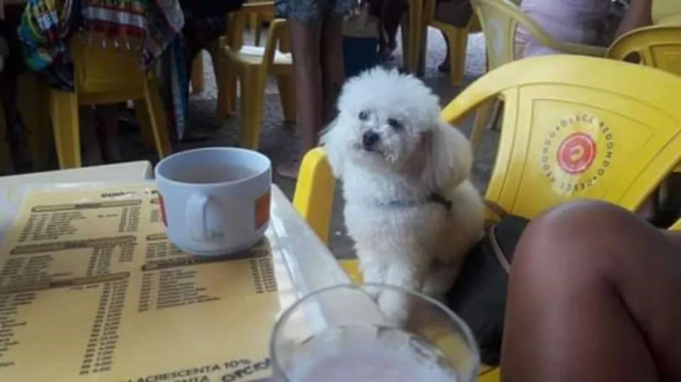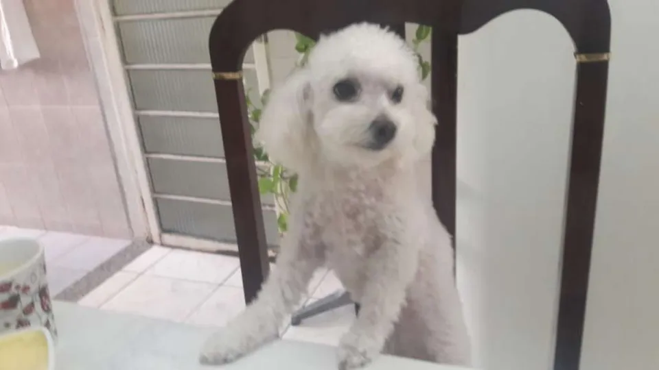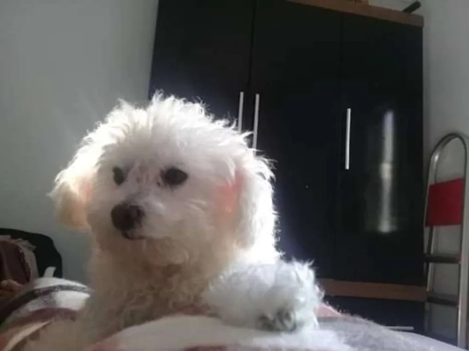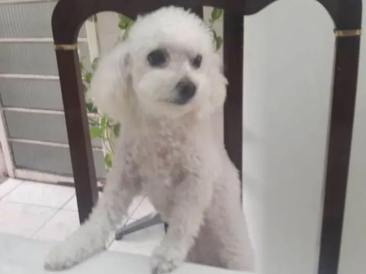 Chokito é um poodle micro, muito dócil e brincalhão. Pelagem branca.