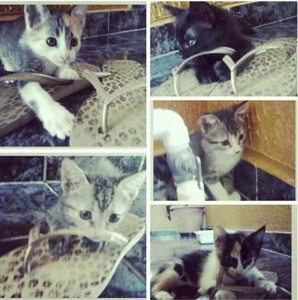 Estou doando 5 gatos, todos com 45 dias. São 3 fêmeas e 2 machos. Eles já não estão amamentando mais, comem ração e tomam água sozinhos.