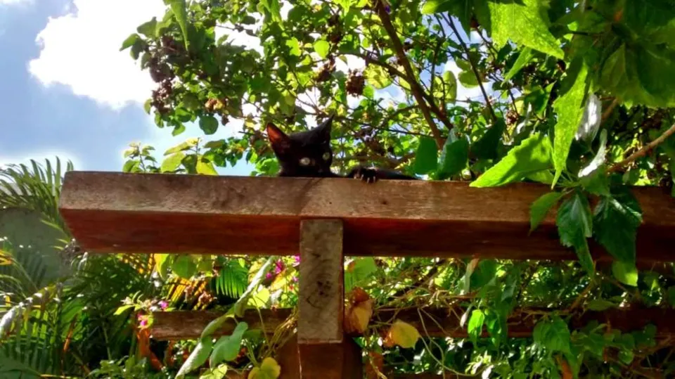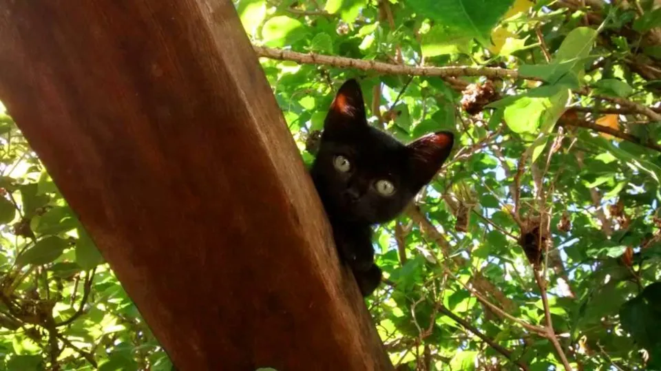 Uma linda gatinha preta encontrada na garagem. A princípio bem assustada, mas logo tranquilizada e rapidamente mansa.