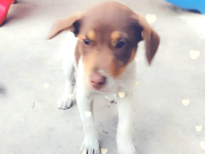 Branco com a cara marrom muito dócil brincalhão tem 4 meses nascido dia 25 de maio 2025