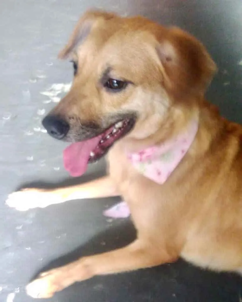 Tem 1 aninho , está castrada ,vermifugada e vacinada. É extremamente dócil e adora brincar. É porte pequeno pra médio.