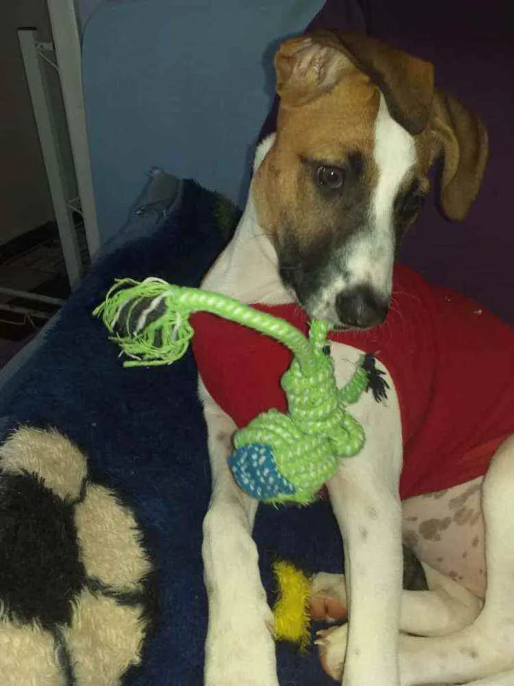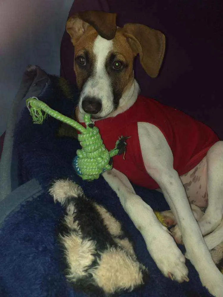 Angel, 4 meses e meio, castrada, com as duas doses da vacina v10, porte médio, super carinhosa, esperta,brincalhona, está em São Paulo SP, adoção responsável Para maiores de 21 anos. Casa sem rotas de fuga.