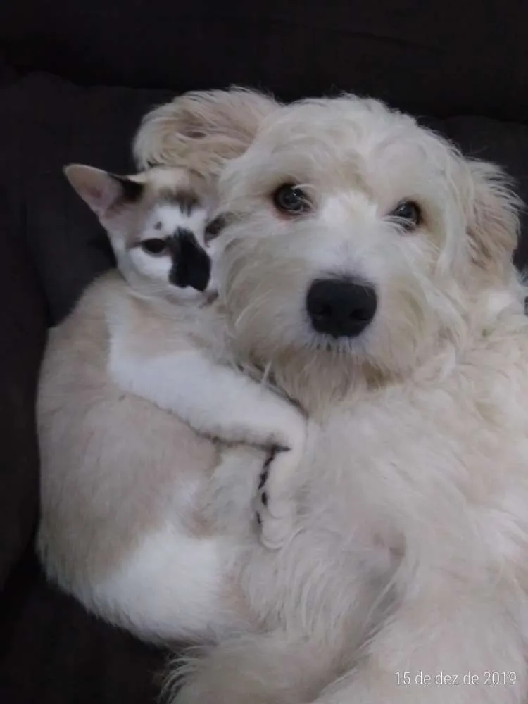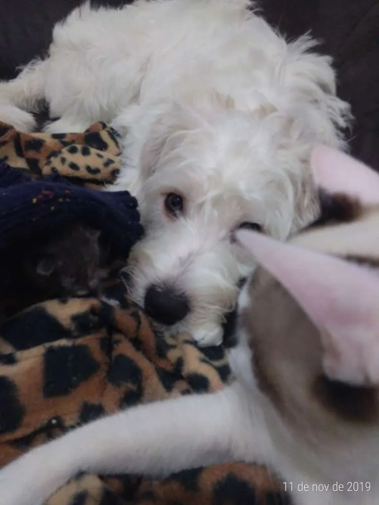 Bart é um cão cheio de amor e carinho,se dá super bem com outros animais e gatos também, gosta de cuidar e proteger animais, é doce ,lindo com os pelos brancos ao vento.estou repostando o adotante achou Bart "alegre" d+ e foi devolvido, está novamente disposição para adoção!