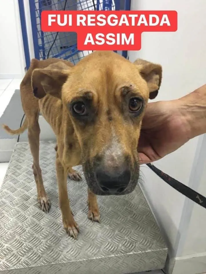 Talvez vc não conheça a minha história…Meu nome é Bella. Eu cheguei tão magrela, caquética, com as costelas aparecendo, que ganhei o apelido de Bella magrella! Eu fiquei tanto tempo sem comer - vivia acorrentada - que quando cheguei no abrigo, nenhuma comida parava no meu estômago… era como se meu corpo tivesse esquecido de como se processava alimentos. Isso foi já há 4 anos!!! Foram meses de recuperação e fiquei lindonaaaaa, forte, saudável… mas nunca se interessaram em me dar um lar cheio de amor!Eu venci a desnutrição, a negligência, maus-tratos… agora só quero uma linda família pra amaaaar muito! Tenho 5 anos e meio, estou castrada, vacinada, sou porte médio, sou muito dócil e amorosa!