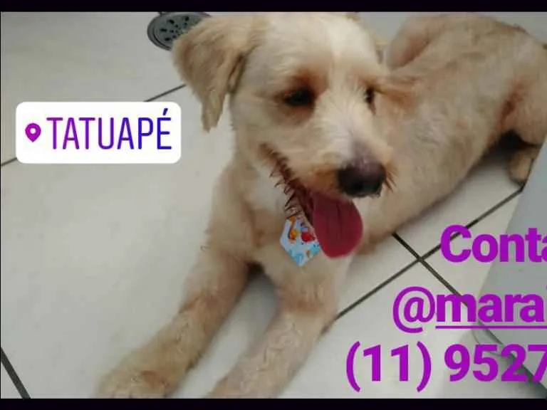 Esse cãozinho foi abandonado em frente ao prédio onde moro. Infelizmente, não posso adota-lo, pois já tenho 3 cachorros, moro em um apartamento, sendo que uma das minhas cachorras é especial, com dificuldade de locomoção. Atualmente ele está em um lar temporário pago, mas precisa de uma família que o adote conscientemente, que o ame e cuide dele. Ele é macho, SRD, tem 1 ano, porte médio/pequeno (12 kg). Foi castrado, vacinado (vacina V8 importada), vermifugado e tomou remédio anti-pulgas. É dócil com pessoas. O ideal seria ele ser "filho" único ou ter um irmão (ou irmã) canino submisso. É carente, carinhoso, ativo. Gosta de brincar, de carinho e de ficar próximo às pessoas. Está no bairro Tatuapé - São Paulo. Contato com Maraisa no telefone/whatsapp (11) 95276-7549 ou no e-mail: maraisasampa@hotmail.com. Peço por gentileza que #compartilhem e me ajudem a dar um final feliz para esse pequeno que tão cedo já conheceu o abandono.