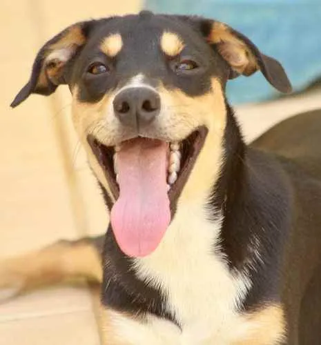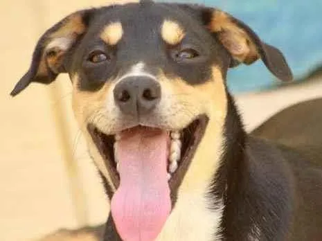 Adote Buddy, um cachorro alegre e carinhoso de 1 ano, porte médio, castrado e vacinado. Ele adora fêmeas e está pronto para um novo lar.