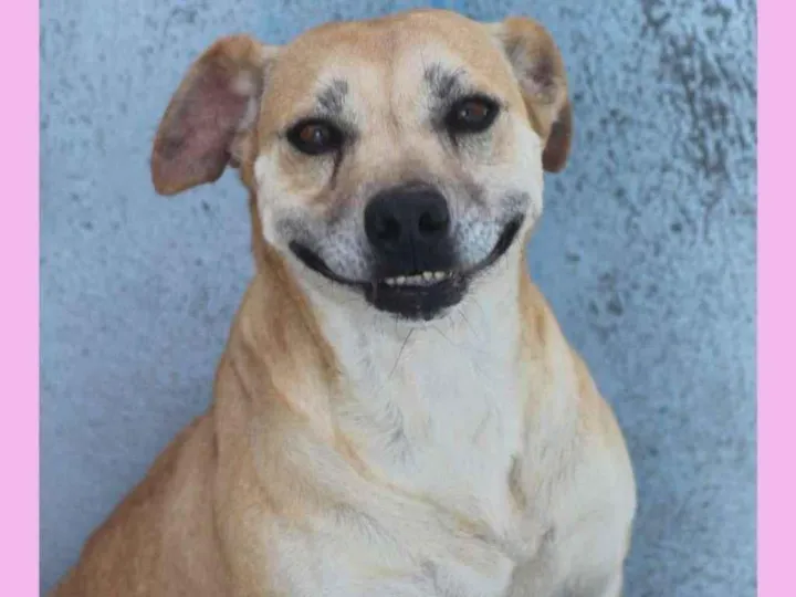 Essa cachorrinha linda é muito alegre e feliz.