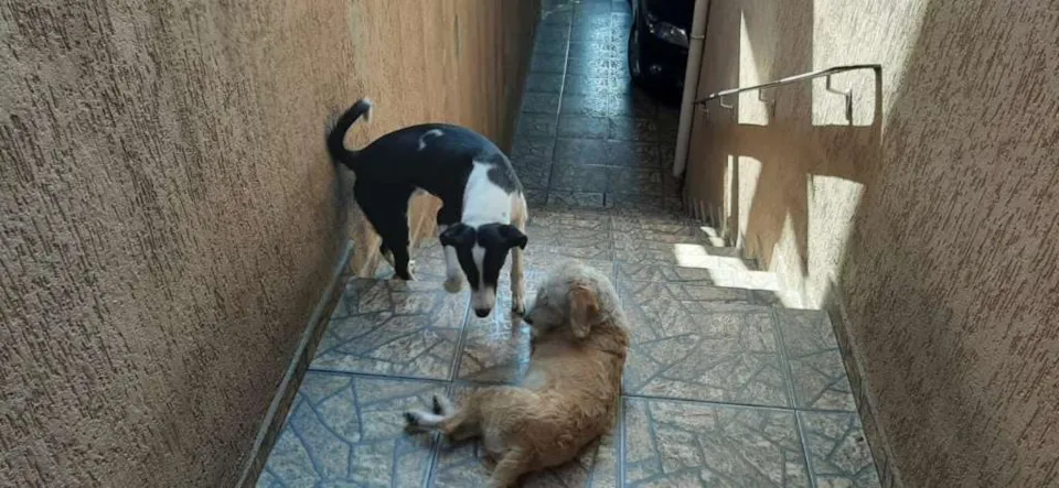 Pretinho macho, porte grandee caramelo fêmea porte medio, ambos castrados com aproximadamente 3 anos e super dóceis.
