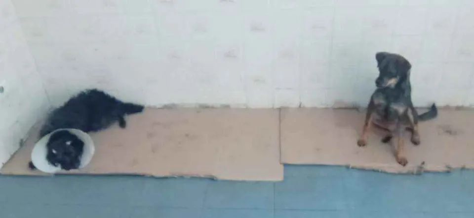 Chuvisco é o bege claro - muito brincalhão e carinhoso, carente, aproximadamente 2 anos, macho castrado e vermifugados, gosta de companhia e brinquedos com apito.