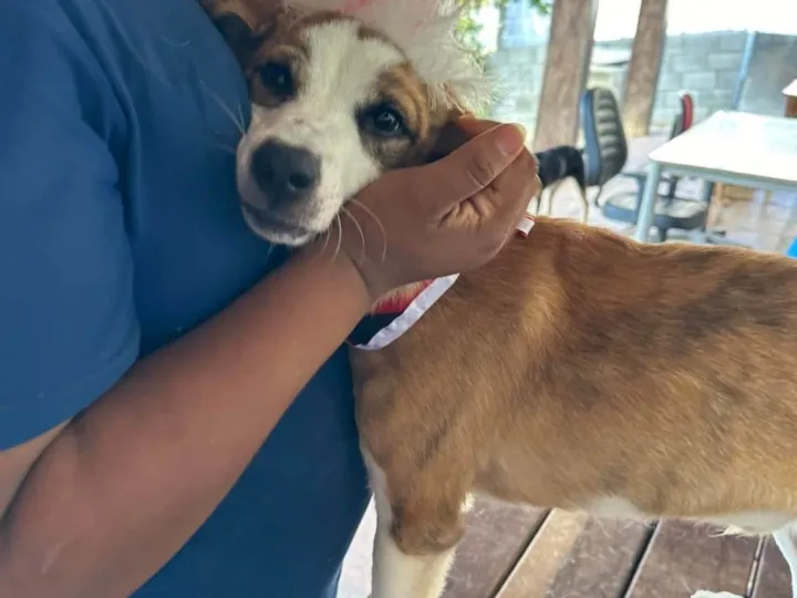 Derek. Olha essa carinhaaaa linda!!!!??Ele é colorido, lindo, doce, amoroso…Mas chegou aqui com 7/8 meses de vida e já está com 1 ano e meio… super bonzinho, se dá com todos, castrado, vacinado.Não chega a ser médiooooo, pesa 12kgs.