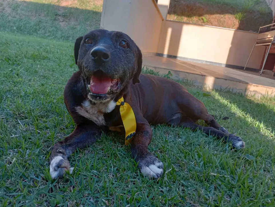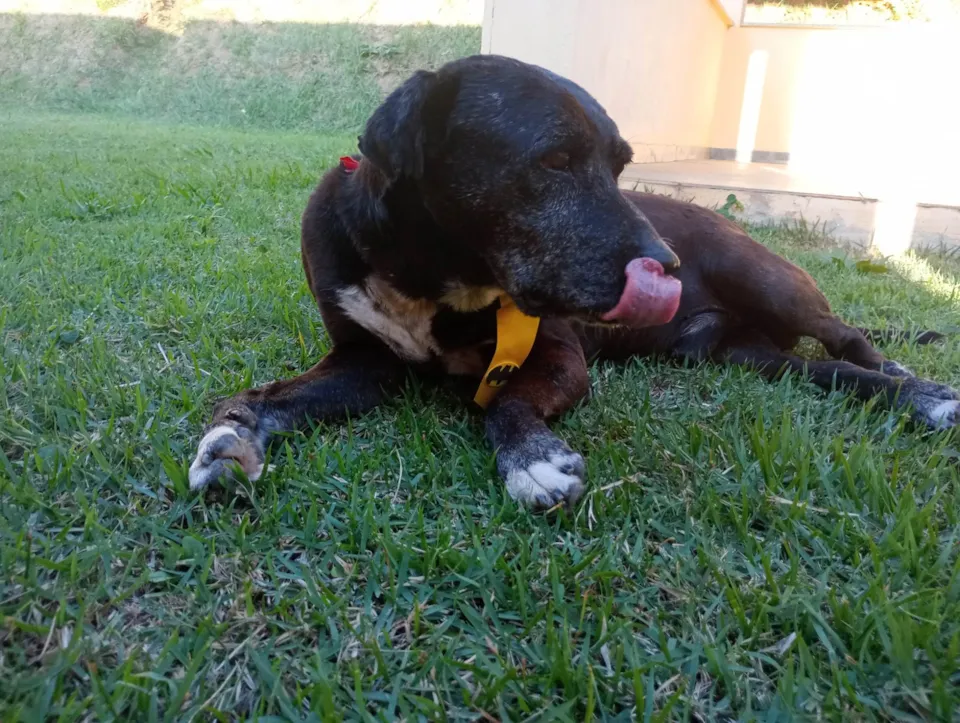 Eu sou o Dom Henrique. Sou um cãozinho idoso. Fui encontrado muito magro e com uma grande bicheira. Rapidamente me recuperei, ganhei peso e agora pareço um novo cachorro.