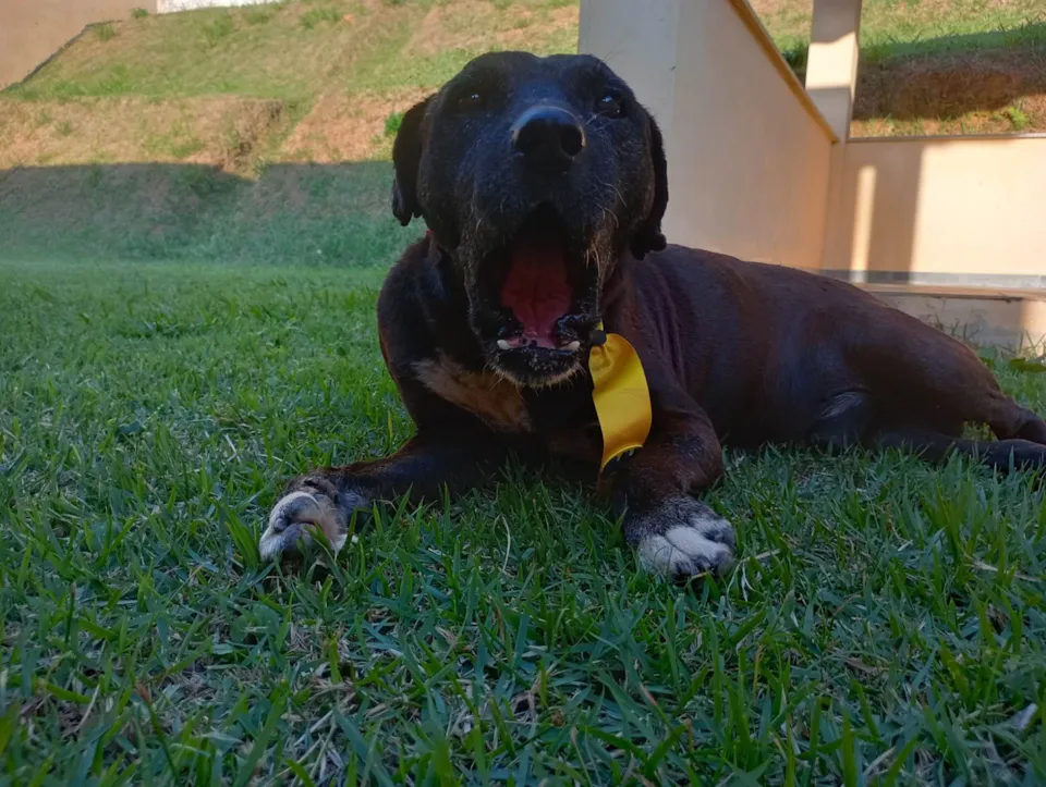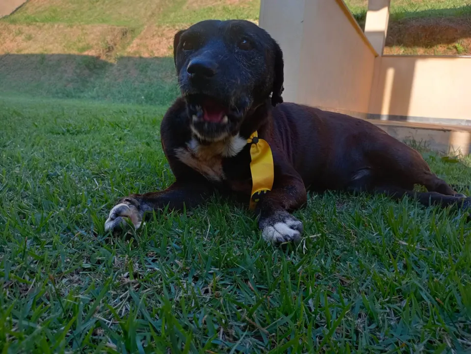 Sou muito dócil. Não estranho ninguém! É só chegar que eu já corro para ganhar um carinho. Gosto muito de brincar de bolinha , tirar umas sonecas gostosas e comer.
