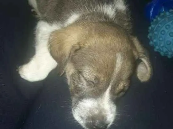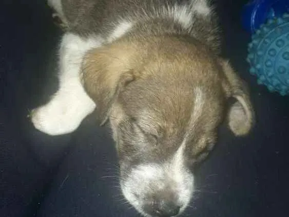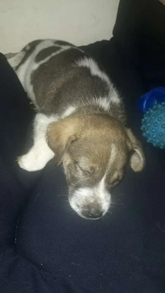 Estou doando um filhote de 2 meses marrom com branco bem brincalhao