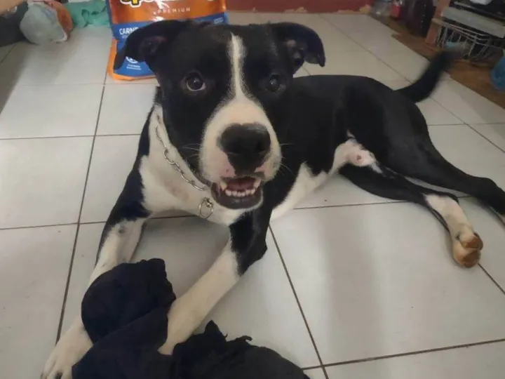 Conheça o adorável Falar com Ezequiel, um SRD de 7 a 11 meses, dócil e brincalhão. Pronto para ser seu amigo! Adoção responsável para todos os lares.