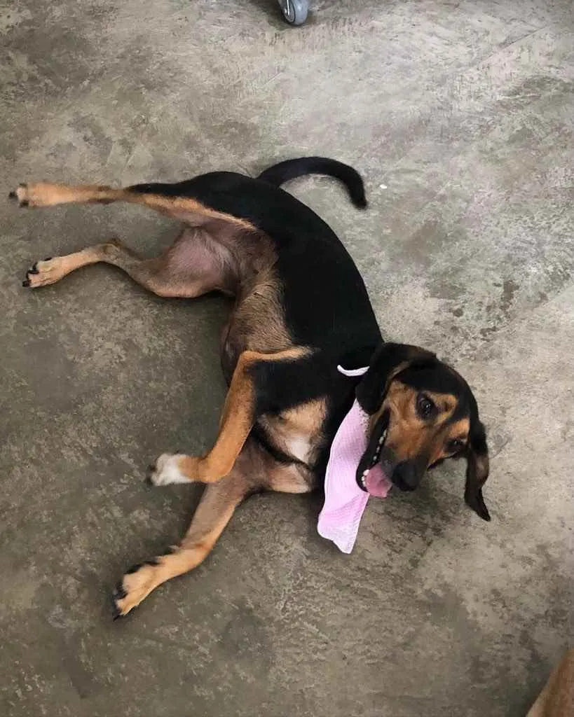 Ela veio para lar temporário conosco e está cada dia melhor.