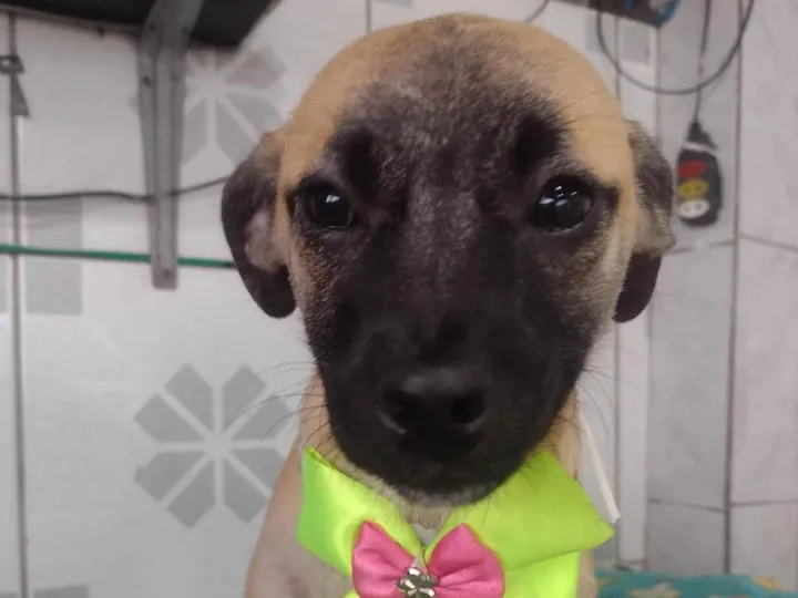 Geleia foi resgatada abandonada com sua família na rua, tem cerca de 3/4 meses, a mãe pesa 10kg, o pai não sabemos.