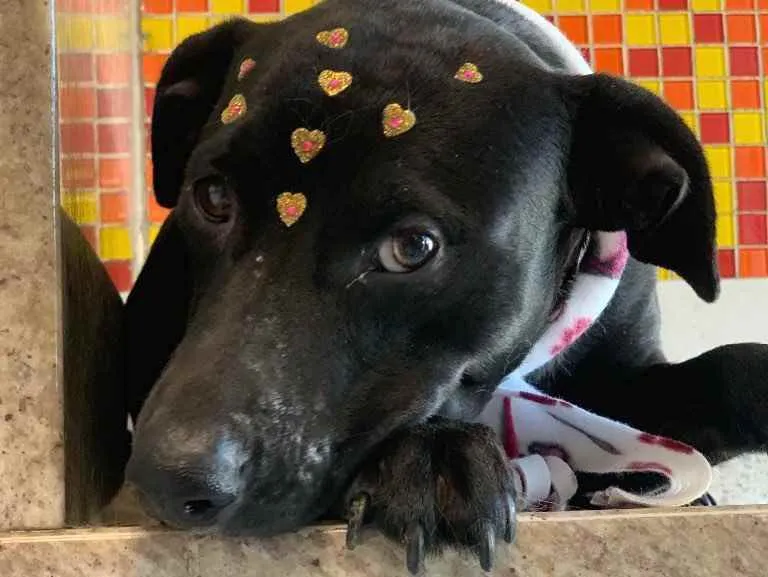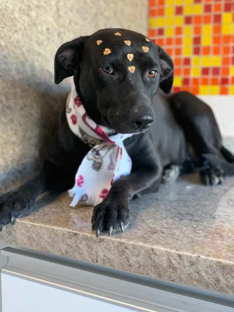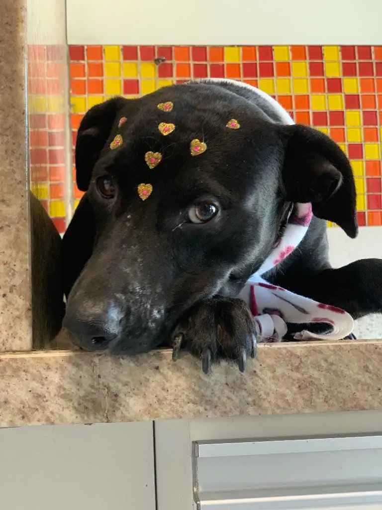 Katy é uma linda cachorra que vive na rua, ela acompanha um mendigo com seus cachorros. Só que ele não tem condições de ficar com ela por já cuidar de quatro cachorros. É muito mansa, se dá bem com outros cachorros, porte médio (20 kg), castrada, vacinada e vermifugada.