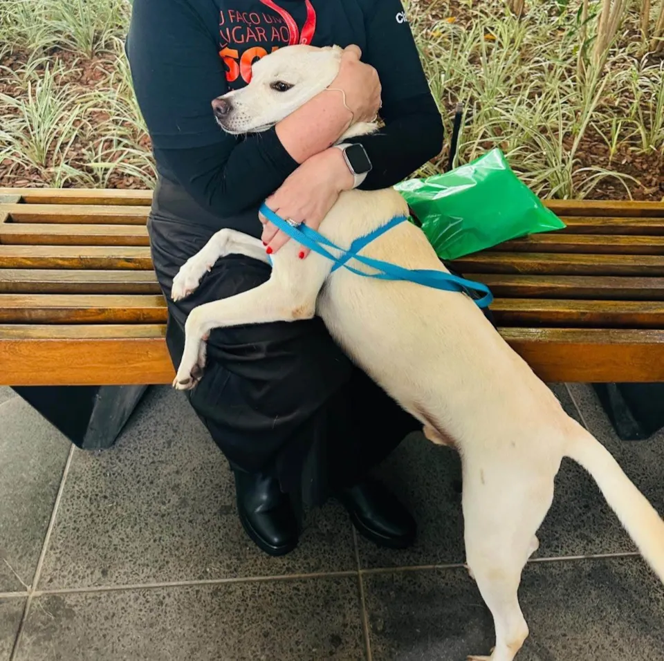 Como que pode???Laka encanta TODO MUNDO que o conhece. No evento da Claro, todo mundo queria abraçar ele!!!Difícil um cachorrinho tãooooo carinhosooooo como ele!Ele pede carinho pra todo mundo… ABRAÇA TODO MUNDO!!E cadê a família que vai curtir esse menino pra vida toda???Ele tem cerca de 1 ano e meio, castrado, vacinado. Não é super agitado, apesar de ser bem jovem. Porte médio, filhote da Larissa, resgatados das ruas no inverno de 2023.Ele se dá com todos os cães, é submisso, não enfrenta brigas.