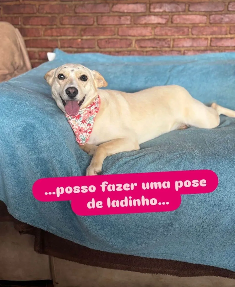 ? Cerca de 3 anos? Porte médio, aproximadamente 16kgs? Carinhosa, querida, amorosa, alegre?Vacinada, castrada? Se dá com outros cães