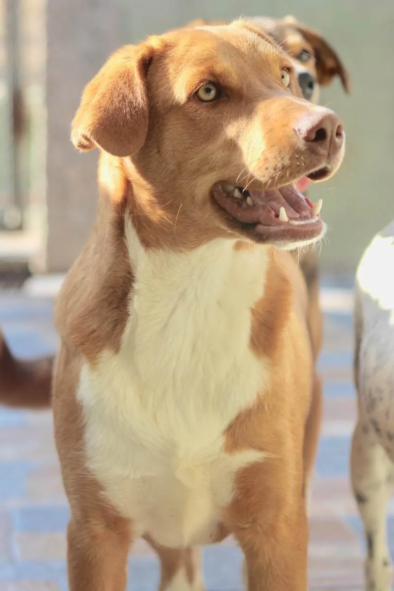 Max é lindo, bonzinho e brincalhão, tem 1 ano, pesa, 18kg, porte médio, está castrado e vacinado.