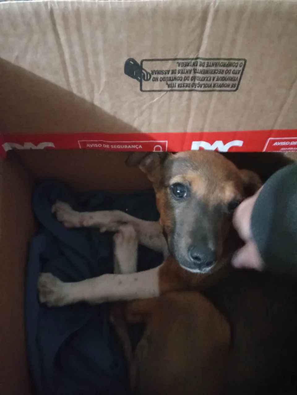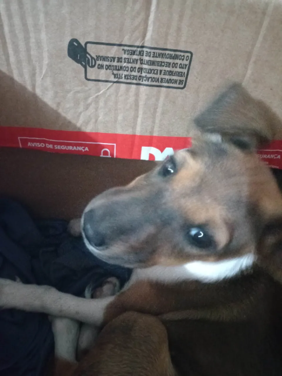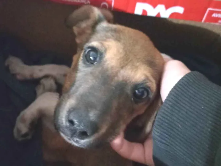 Doação cachorrinha aproximadamente 5 meses (porte médio) fêmea, bem carinhosa e tímida, foi abandonada na porta da escola e não tenho condições de ficar.