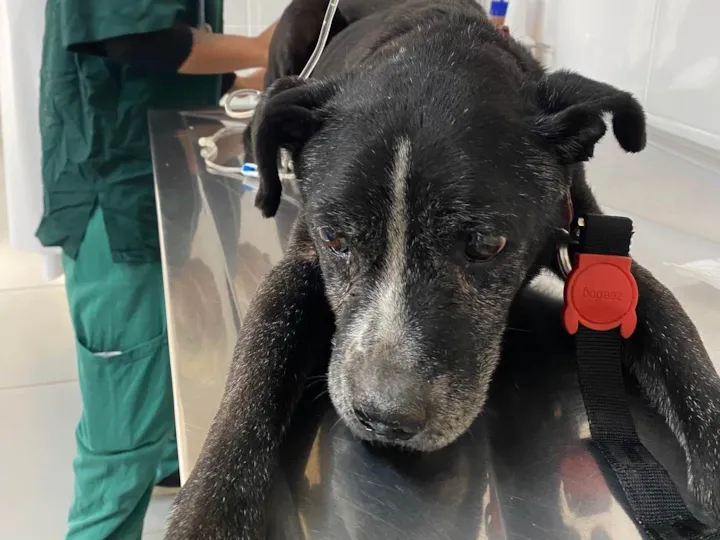 Nós encontramos esse cachorro na rua hj, ele foi jogado de um carro e eu não tenho como ficar com ele