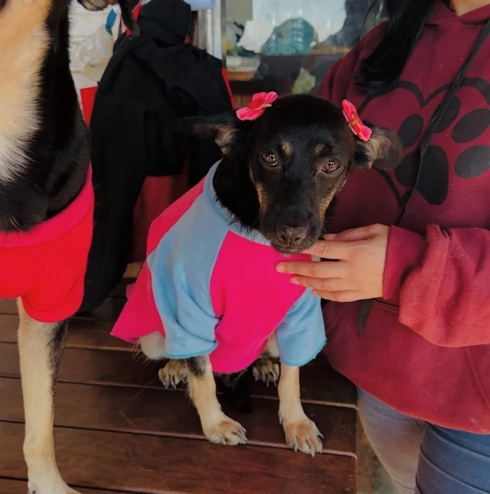 Nicole, a mãezinha doce abandonada amarrada no meio do mato, já procura sua família de amor!! ??????Ela é uma fofaaa, muito boazinha, se dá com todos, meiga, carinhosa! Porte pequeno e baixinha. Cerca de 3/4 anos, castrada, terminando protocolo de vacinas.
