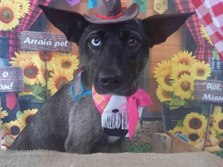 COM UM OLHO AZUL E OUTRO CASTANHO, SEM PREJUÍZO NA VISÃO.