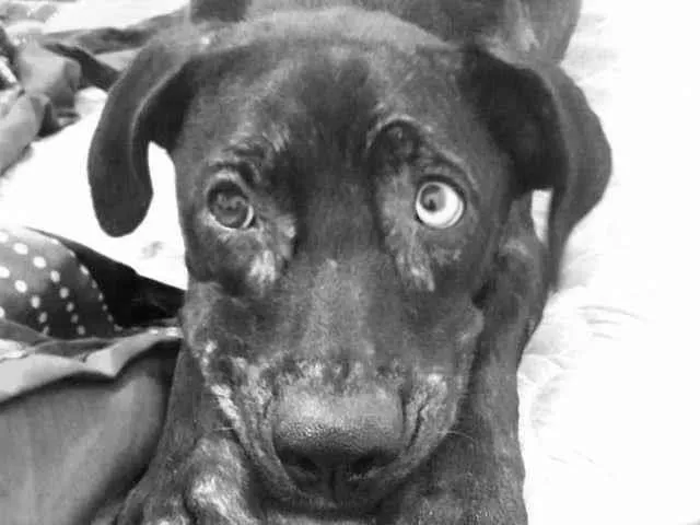 Adote a Pantera, cadela SRD de 2 anos, pelagem preta e dócil. Ideal para famílias e muito sociável. Dê a ela um lar cheio de amor!