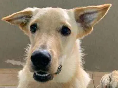 Pipe é um vira-lata muito dócil com características de um labrador... cor é creme clara.
