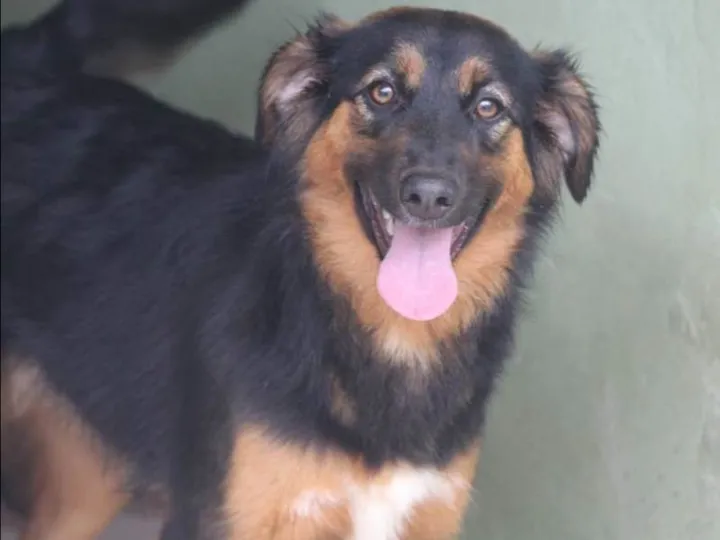 Adote Polly, uma cadela alegre de 1 ano, 17kg, porte médio. Castrada e vacinada, ela é a companhia perfeita para brincar e alegrar seus dias.