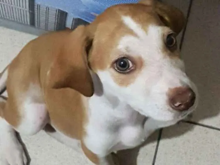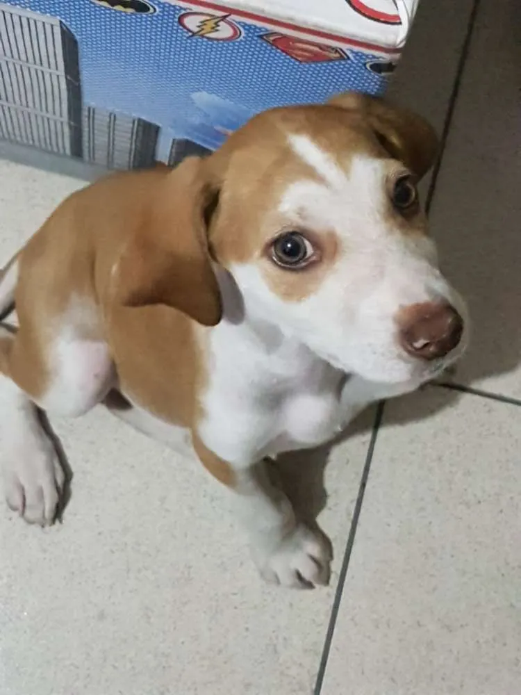 Encontrei o pequeno Roberto Miguel no meio da rua, estava chovendo e ele ia na direção de qualquer carro, como se estivesse pedindo socorro, estava muito magro, dava pra contar as costelinhas dele, pesava 1,5kg...Hoje já está beeeem melhor, já levei no veterinário e a mesma disse que ele está muito bem, disse que ele é muito parecido com o Beagle, por causa das orelhas. Muito dócil, adora receber carinho e gosta de colo. Infelizmente não posso ficar com o mesmo, pois tenho 3 cachorros grandes (Labrador, Dogo Argentino e um Pastor Belga) e eles estão alucinados com ele. No momento ele está em um lar temporário. OBS já está vermifugado, só não dei as vacinas pq a veterinária disse que ele não iria aguentar.