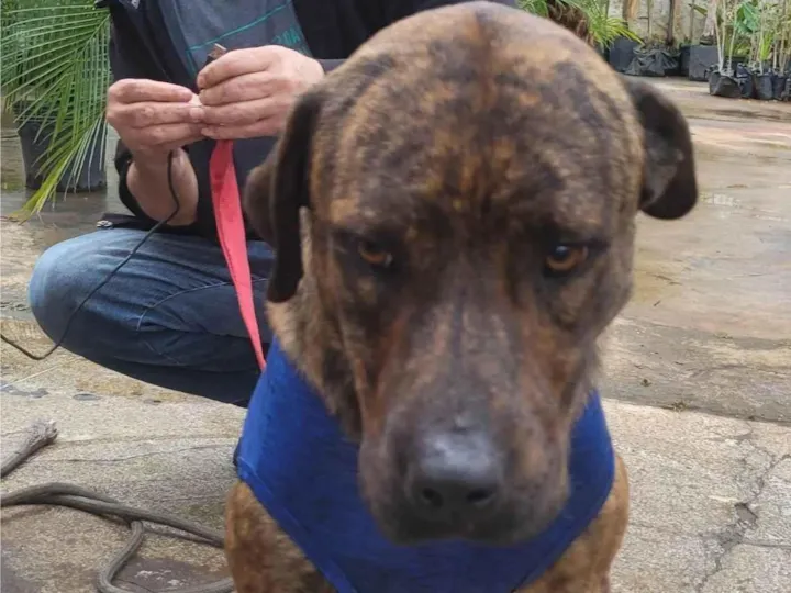 Romeu é porte grande tem um ano e foi abandonado em um estacionamento, estou cuidando dele porque ele fica lá abandonado, mas é super dócil um fofo mesmo, está em São Miguel Paulista contato WhatsApp 11 953779333 Fabiane.