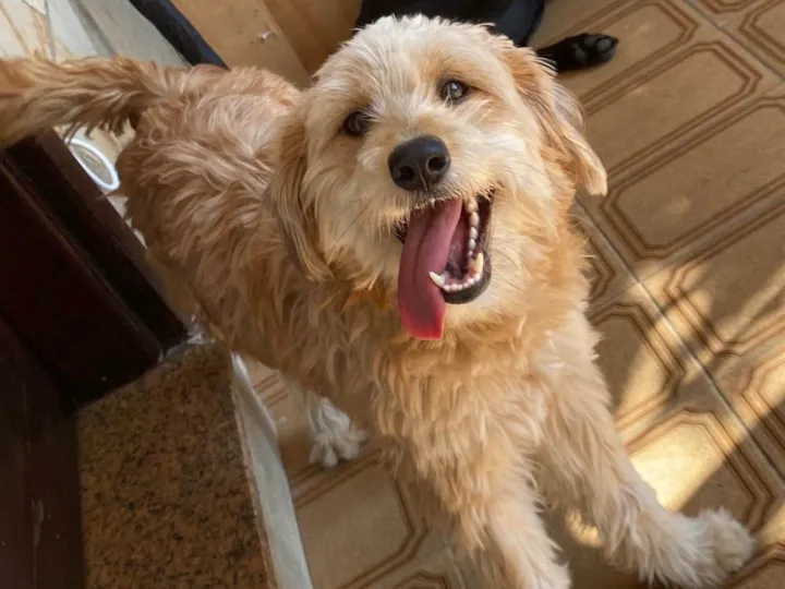 Encontramos um cachorro faminto e sedento. Cuidamos dele, mas precisamos de alguém que possa adotá-lo. Nosso espaço é pequeno para mais um animal.