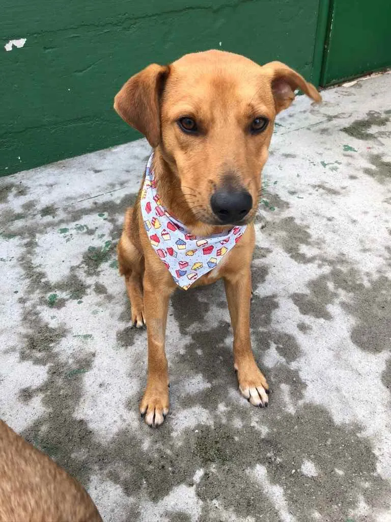 + ou - 1 ano, porte M, castrado, vacinas em andamento.