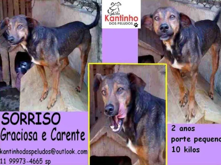Sorriso é uma fofa! Muito alegre e sorridente. Convive muito bem com outros cães, é carinhosa, uma fofa! Tem 2 anos e é pequena, pesa 10 kg. Está castrada, vacinada e vermifugada.