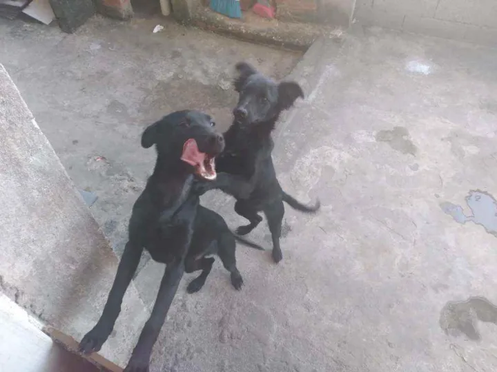 Elza é uma fêmea de caça. Ela tem a mesma idade, mas é menor. CASTRADA. Brinca muito tb
