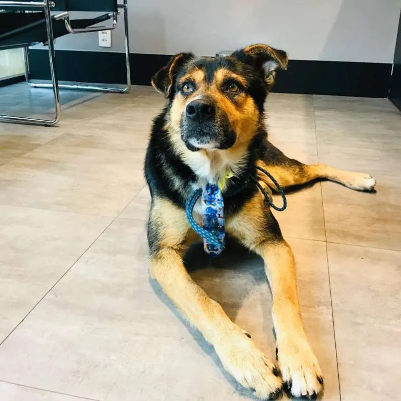 Tadeuzinho me seguiu até o trabalho em uma segunda-feira. Levamos ele ao veterinário, e ele ficou conosco durante 1 mês. Foi adotado por uma familia, mas acabou não dando certo e voltou. Apesar de ser muito amado por todos a maioria dos funcionários já tem um animalzinho, ou falta espaço para ter um.