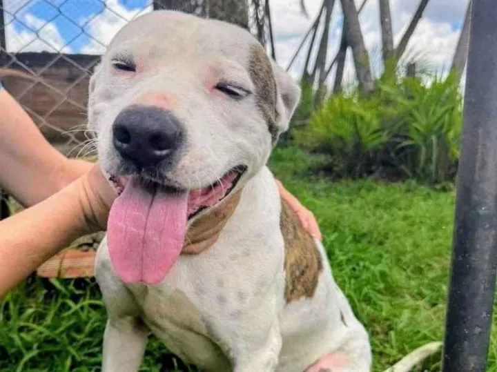 O Theo é um lindo pitbull resgatado de maus tratos, foi cuidado, castrado, vacinado e está prontinho de malas prontas pra ganhar um Lar cheio de amor para a vida toda.