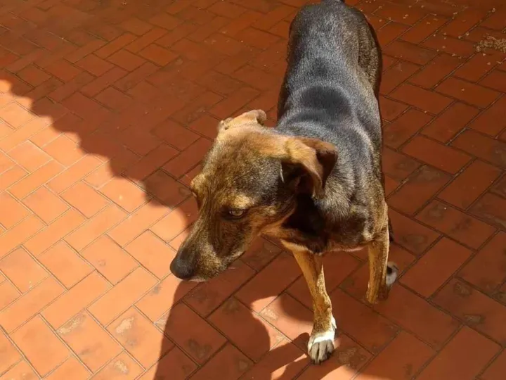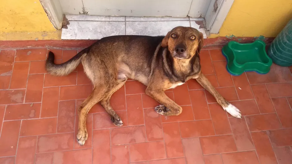 Oi , me chamo Alex, encontrei esse cachorro na rua na época da pandemia, estava aparentemente bem cuidado, mas como de praxe foi abandonado, ele entrou em um comercio em um dia de chuva e recebeu ali alguns cuidados de uma pessoa, na hora de fechar a loja esse cachorro seguiu essa pessoa que estava em um carro por 3km, chegando aqui na rua essa pessoa comentou que o cachorro chegou na porta dela e queria entrar na casa dela e ela me avisou, fui lá e peguei o cachorro pra ver se arrumamos um lar para ele, consegui castrar e colocar chip agora só falta um lar definitivo para ele , ele é carinhoso, adora crianças e adultos, todo mundo que passa aqui cumprimenta ele , quando passa gente estranha ele avisa, cachorro bom para sítios e casa com quintal grande pois ele é de médio porte , vai com a casinha que foi comprada para ele , tem a pelagem tigrada