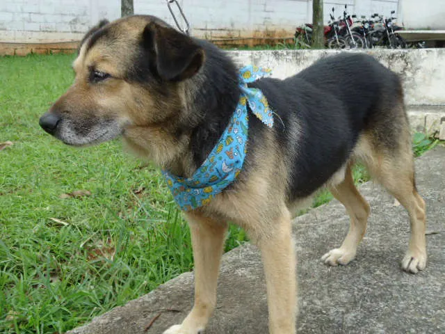 "Totó sempre morou na vila Clarice, próximo ao Pico do Jaraguá, concorrendo com outros peludos a pouca comida que restava nas ruas. Teve a “sorte” de entrar num condomínio de empresas e conseguir uns restos dos almoços dos funcionários. Quando fomos ver, já era da turma. Era bem tratado, tinha ração, local para dormir e atenção, até que, após 5 meses de convivência, a empresa que ocupa 6 galpões, terá que mudar de endereço e não poderá levar o pobre peludo. No novo endereço há 2 grandes cães de guarda que cuidam do local à noite.