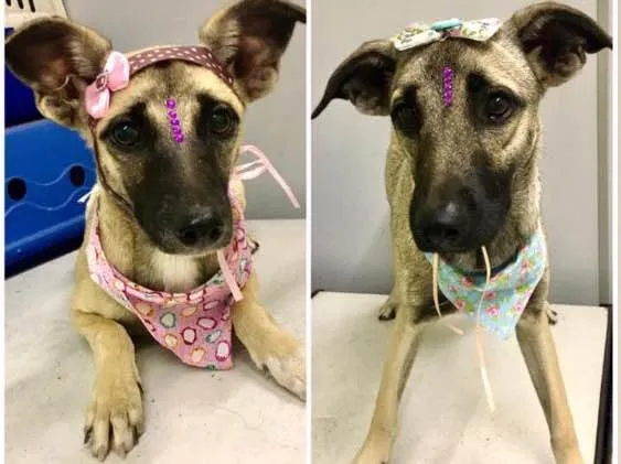 Xuxa e Leca foram abandonadas em uma clínica veterinária em Ermelino Matarazzo- Zona Leste, as duas já estão castradas, vacinadas, vermífugadas, chipadas e com antipulga em dia, são super dóceis, muito brincalhonas e carinhosas, procuram uma família com muito amor, Xuxa pesa 10 kg e Leca 13 kg e 800