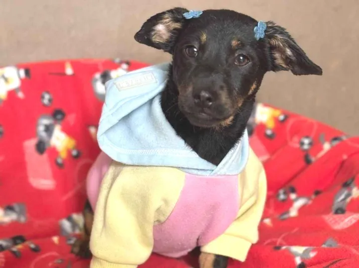 Uma Pretinha incrivelmente linda ??????Zoe, 5-6 meses, filhote da mamãe Nicole, pequena.Vacinas em andamento, castração obrigatória após protocolo de vacinas. Porte pequeno para médio.