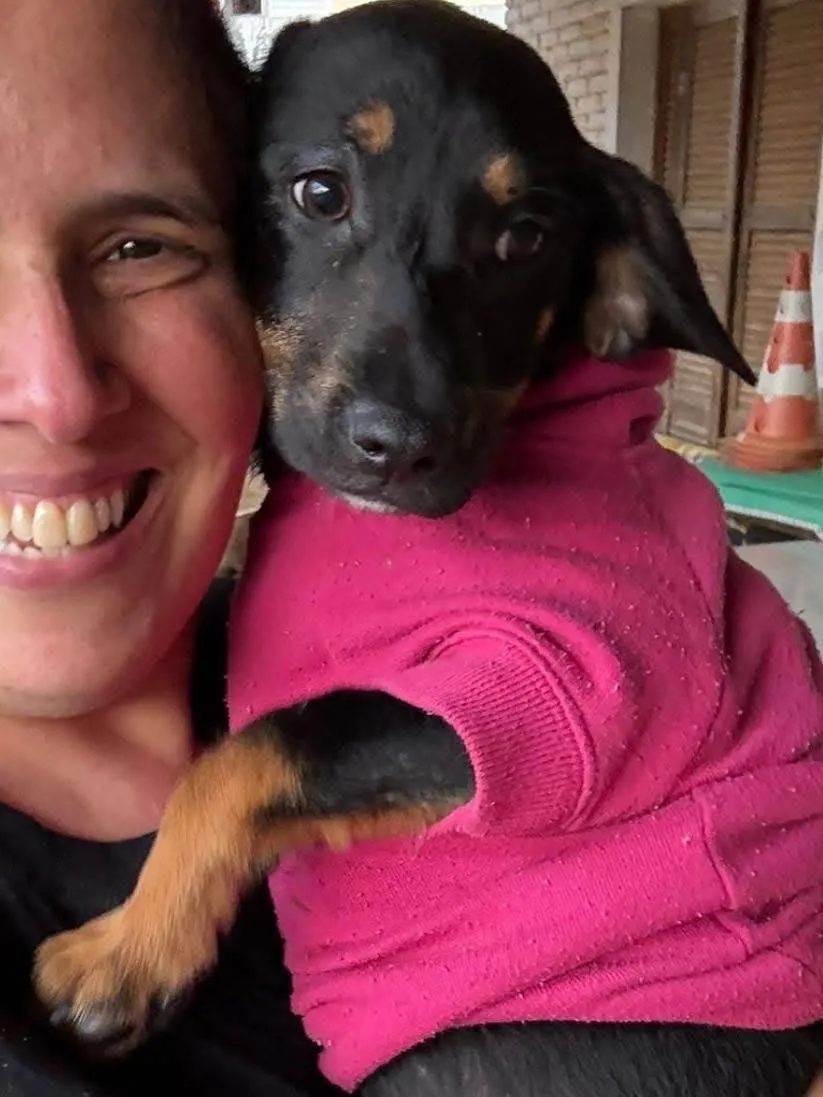 Zoe continua aqui esperando uma super família??Ela é porte pequeno para médio, já está com 6 meses de idade, filhote da Nicole, que é pequena.Vacinas em andamento, castração obrigatória após vacinas.Super meiga, doce, meio medrosa, boazinha!!