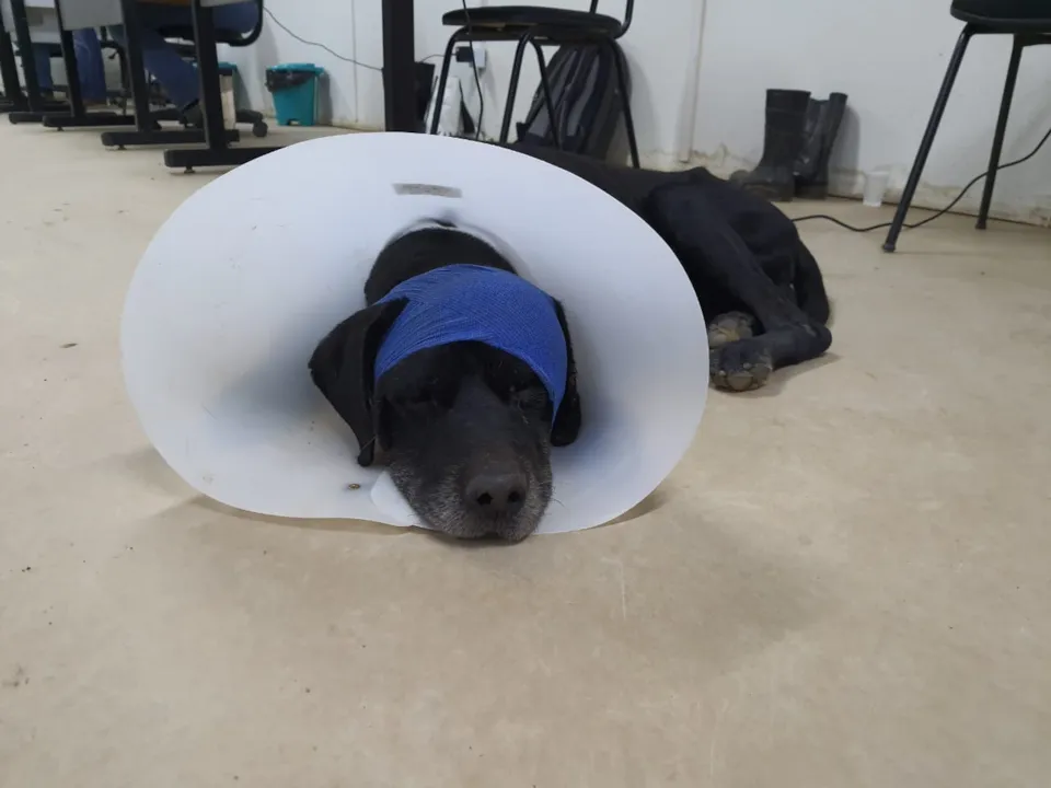 Atualmente está sendo tratado em um lar provisório, pois foi encontrado acidentado com um trauma. De acordo com o veterinário pode ter sido um atropelamento ou pancada.