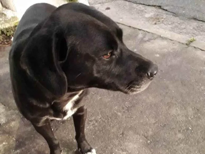Cão de aproximadamente 2 anos (porte médio e largo), preto com pontas das patas e rabo branco, bem dócil, carinhoso e alegre. Parece gostar de andar de carro . Apareceu no bairro de Veleiros (Zona Sul)/Capela do Socorro. Divulgamos nos bairros próximos, mas não apareceu dono. Hoje é tratado como cão comunitário, pois está sendo bem cuidado por vizinhos, mas sem condição de adotar. Dorme na rua (casinha doada), é alimentado por ração doada por moradores. Aguarda localizar ser guardião ou receber um novo guardião.