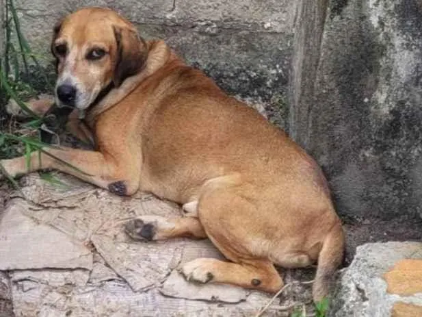Cachorro Carmelo, perdido (possivelmente abandonado) de porte médio, aparenta ter de 6 à 8 anos, muito dócil e assustado, não late e nao avança em outros cães. Já tem alguns dias andando na rua da minha casa, eu e outros moradores adaptamos um local para ele e estamos alimentando e dando água. Aparentemente está bem mas recentemente fui informado que atropelaram ele e não prestaram socorro (estou averiguando a informação para fazer a denúncia). Precisa de cuidados urgente e de um lar para poder descansar e receber o carinho que merece.